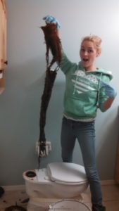 Even after clearing the main line, the toilet was still having issues flushing. The plumber told her it would be an additional $265 to remove the toilet and check/snake it from the inside and reset the existing toilet. Wow, $265 and that didn’t even include a new toilet!! Being my daughter, she politely declined asking him if he was insane because that was more then the service call to clear the main line.