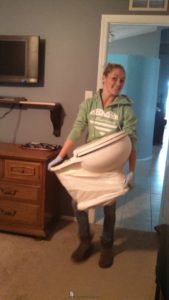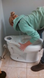 She decided to replace the toilet herself, with a little supervision from Mom. So we decided we would use this opportunity to show how easy it is to change out a toilet (she really didn’t need my help, she just needed… practice!)